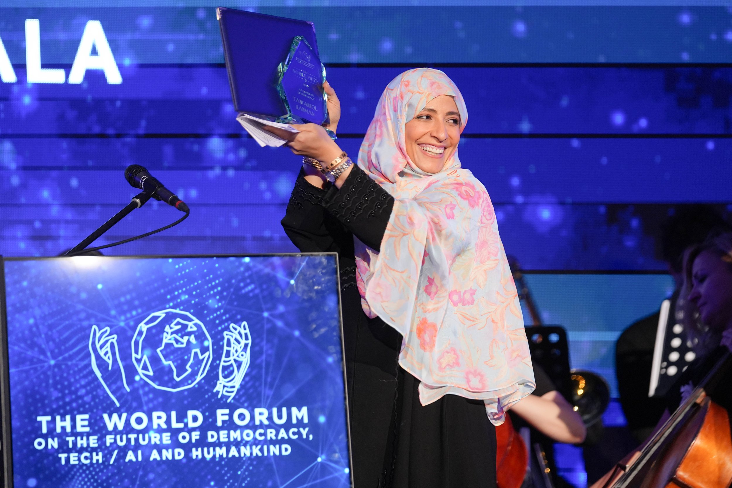 Tawakkol Karman receives The Noble Prize - her non-violent struggle for the safety of women and for women's rights to full participation in peace-building work. A fearless journalist, human rights champion, and founder of Women Journalists Without Chains, she stood firmly for press freedom, civil rights, and the power of non-violent change through her leadership during the Arab Spring. In 2011, she became a co-recipient of the Nobel Peace Prize - the first Arab woman, the first Yemeni, and one of the youngest laureates in history.