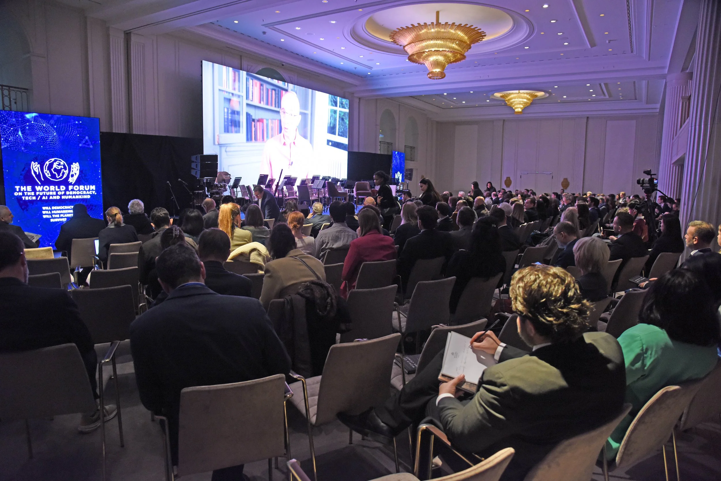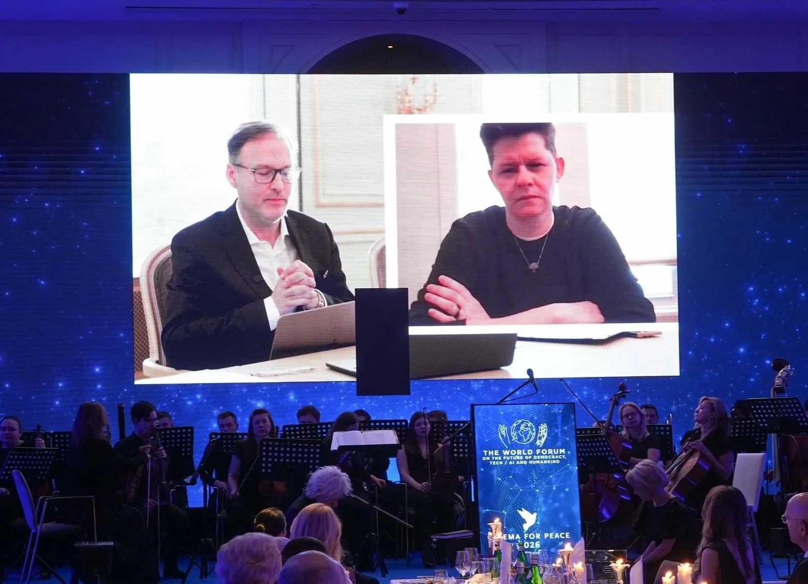 Jaka Bizilj, founder of The World Forum & Cinema for Peace, reminded that only Russian interference and the mass manipulation of social media - especially through Cambridge Analytica - gave in 2016 Trump the US presidency instead of Hillary Clinton, and connected in his opening remarks unregulated social media and AI with the global democratic erosion and threats to our freedom: "We experience the most exciting, but also the most dangerous period in human history - we have to make everyone aware and set new rules for humankind." He revealed that board member David Sinclair received FDA approval for reprogramming cells in humans - potentially marking the beginning of ending sickness and death. He noted that Donald Trump has cut US military and humanitarian support to Ukraine by 99% in 2025, and announced Inter-Parliamentary Support for the freedom of Taiwan with 10 concrete measures. He also announced the development of The World Forum Council on AI and Social Media, including "The Ten AI Commandments" and advocated in response to the speeches of Marco Rubio and JD Vance at the Munich Security Conference, who had invited for the first time fascists from the AfD this year, to build an alliance based on democratic and humanistic values: "Values are all we have, and it's what defines our freedom."